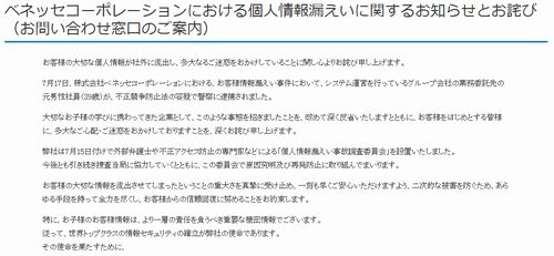 ベネッセお詫び